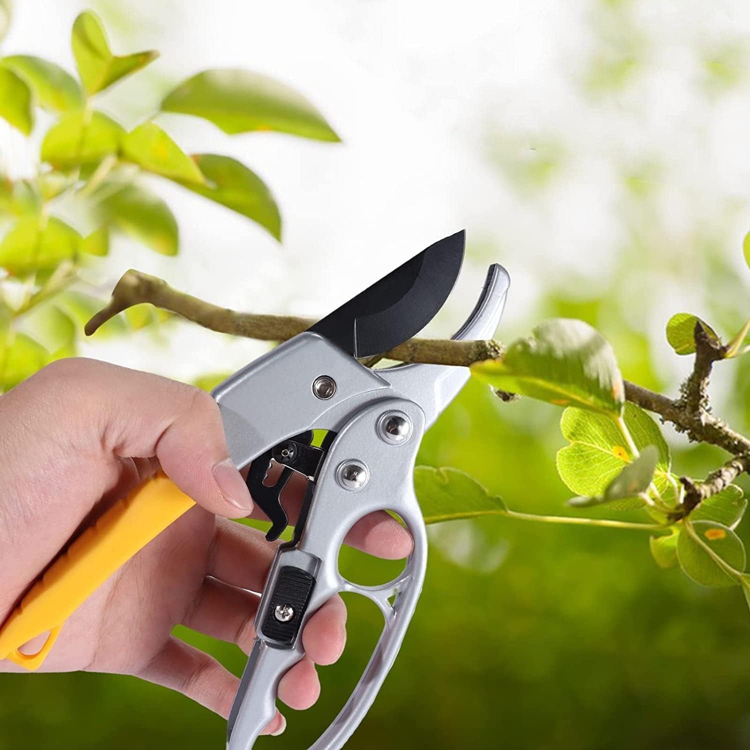Our ratcheting pruning shears are a game-changer. The innovative ratchet mechanism multiplies your cutting power by up to 4 times, allowing you to slice through thick branches with minimal effort. This feature is a lifesaver for seniors 👵👴, gardeners with arthritis, or anyone who wants a pain-free trimming experience, establishing these as a must-have in your garden tools collection.